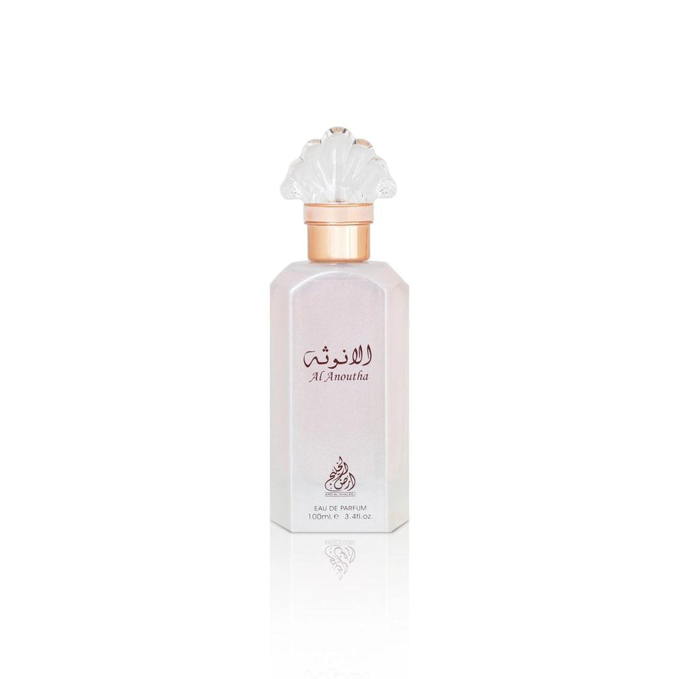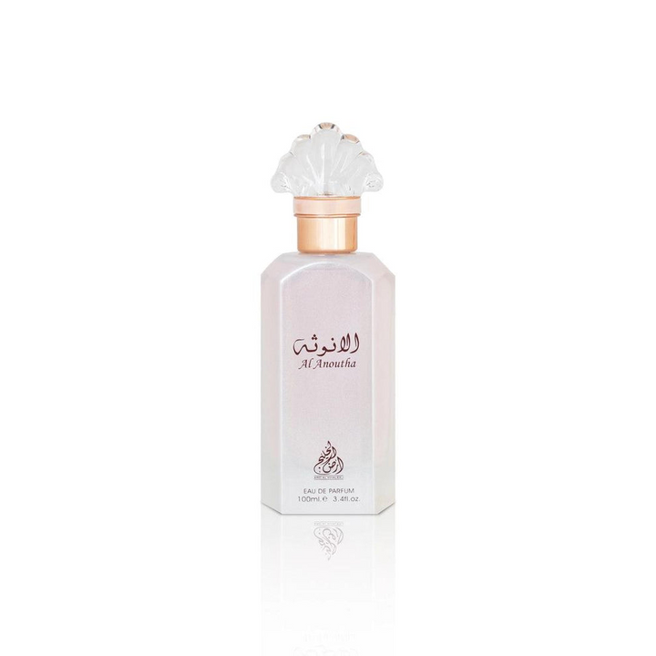 It opens with a luminous blend of aldehydic notes, bergamot, and pear, creating a crisp, sparkling introduction that evokes freshness and clarity. At its heart, Al Anoutha unveils a classic floral harmony of muguet (lily of the valley) and rose, delivering a soft yet sophisticated bouquet that speaks of poise and femininity.